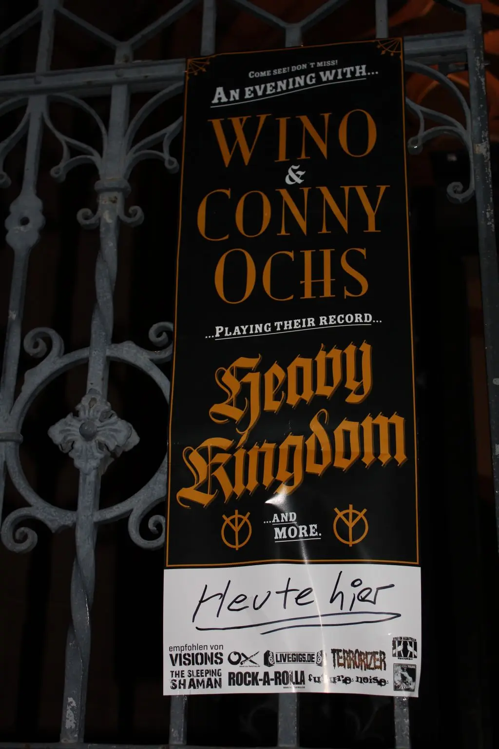 Unfortunately I missed the first tour of Scott 'Wino' Weinrich and Conny Ochs two years ago. At this time, Conny Ochs opened up for Wino but after a couple of shows they decided to play together on stage. I can well imagine that this was the laying of the foundation stone for 'Heavy Kingdom' (review here), which has been released thru Exile On Mainstream Records at the beginning of 2012. Due to the fact that I dig the acoustic work of both musicians I was, therefore, all the more pleased about that cooperation and the ensuing great result. All the nicer then, that both guys returned to Cologne to the Christuskirche where they already played on their first tour. My good friend Georg and his wife Sandra (thanks a lot for the photos!) thought along the same lines and so we drove on the first day of the Easter break to Cologne which is not far away from the Ruhr Area.